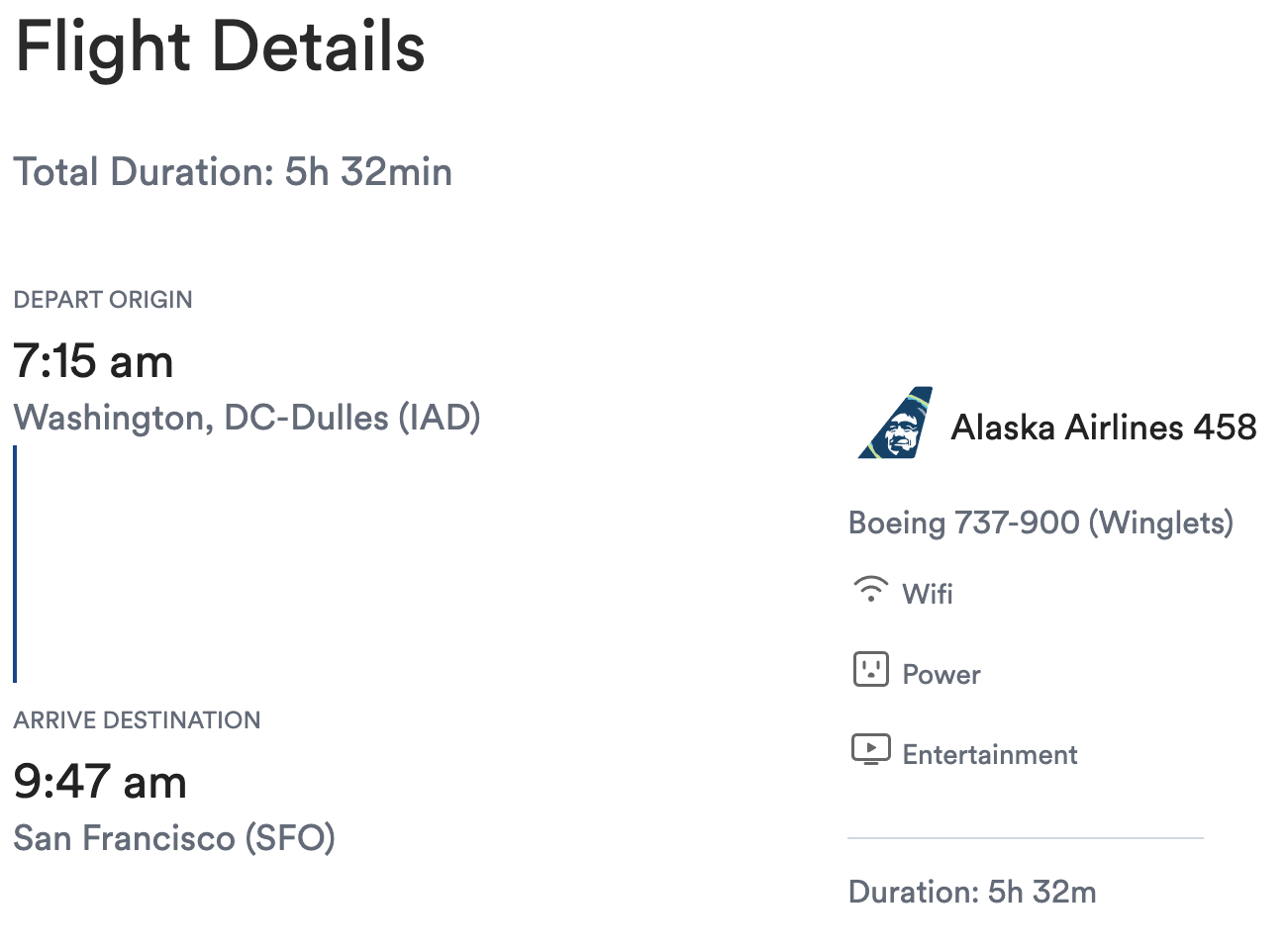 Flight, SFO to IAD