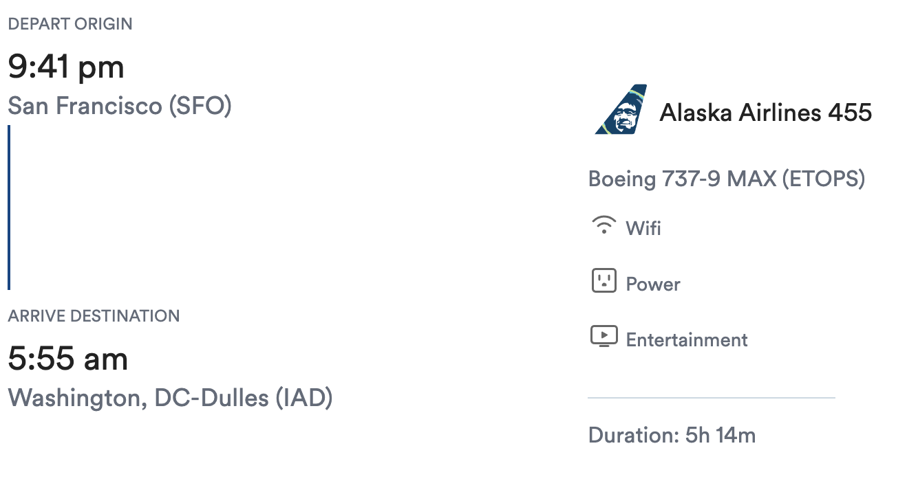 Wednesday, 21:41: SFO flight to IAD