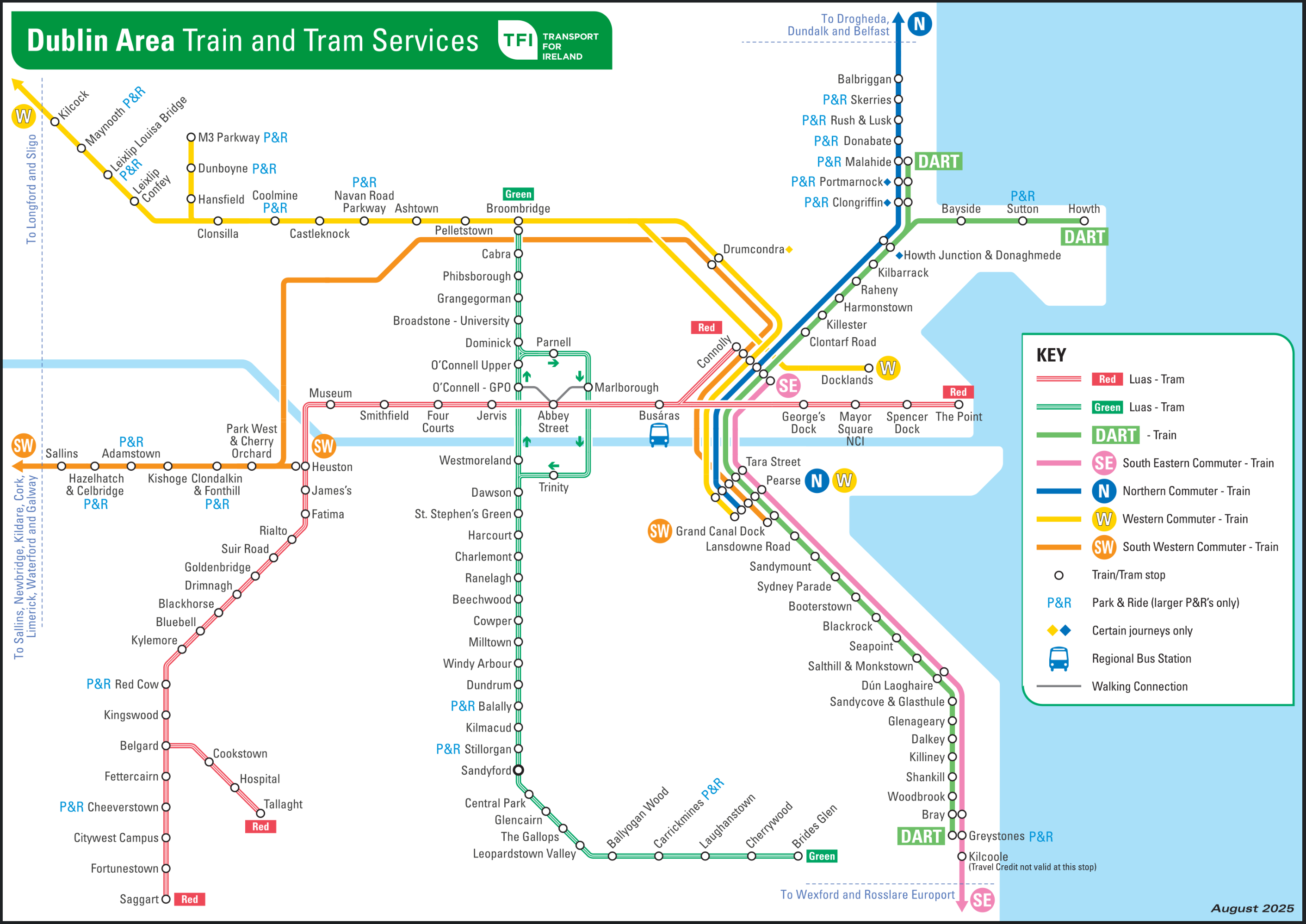 • NOTE: DOES accept TFI Leap Card, but standard fare caps do not apply.